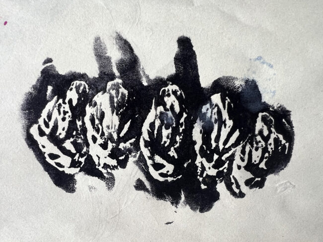 Kaia’tanó:ron Dumoulin Bush est une illustratrice et artiste visuelle d’origine Onkwehonwe basée à Oshahrhè:’on (Châteauguay, Québec). Elle utilise le dessin, la peinture, la sculpture et la performance pour aborder les questions autochtones contemporaines, affronter et guérir ses propres traumatismes intergénérationnels. En 2018, elle a obtenu un baccalauréat en beaux-arts et en culture visuelle autochtone de l’Université OCAD (Toronto). Ses œuvres ont fait l’objet d’expositions au centre d’art daphne à Montréal (2021), dans le cadre de la Nuit Blanche à Toronto (2017) et à la Galerie Gisborne en Nouvelle-Zélande (2023). Elle a réalisé plusieurs murales d’art public en coproduction avec MU (Montréal).