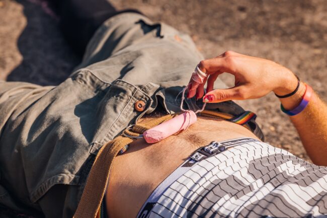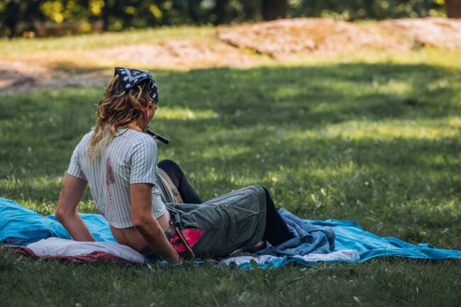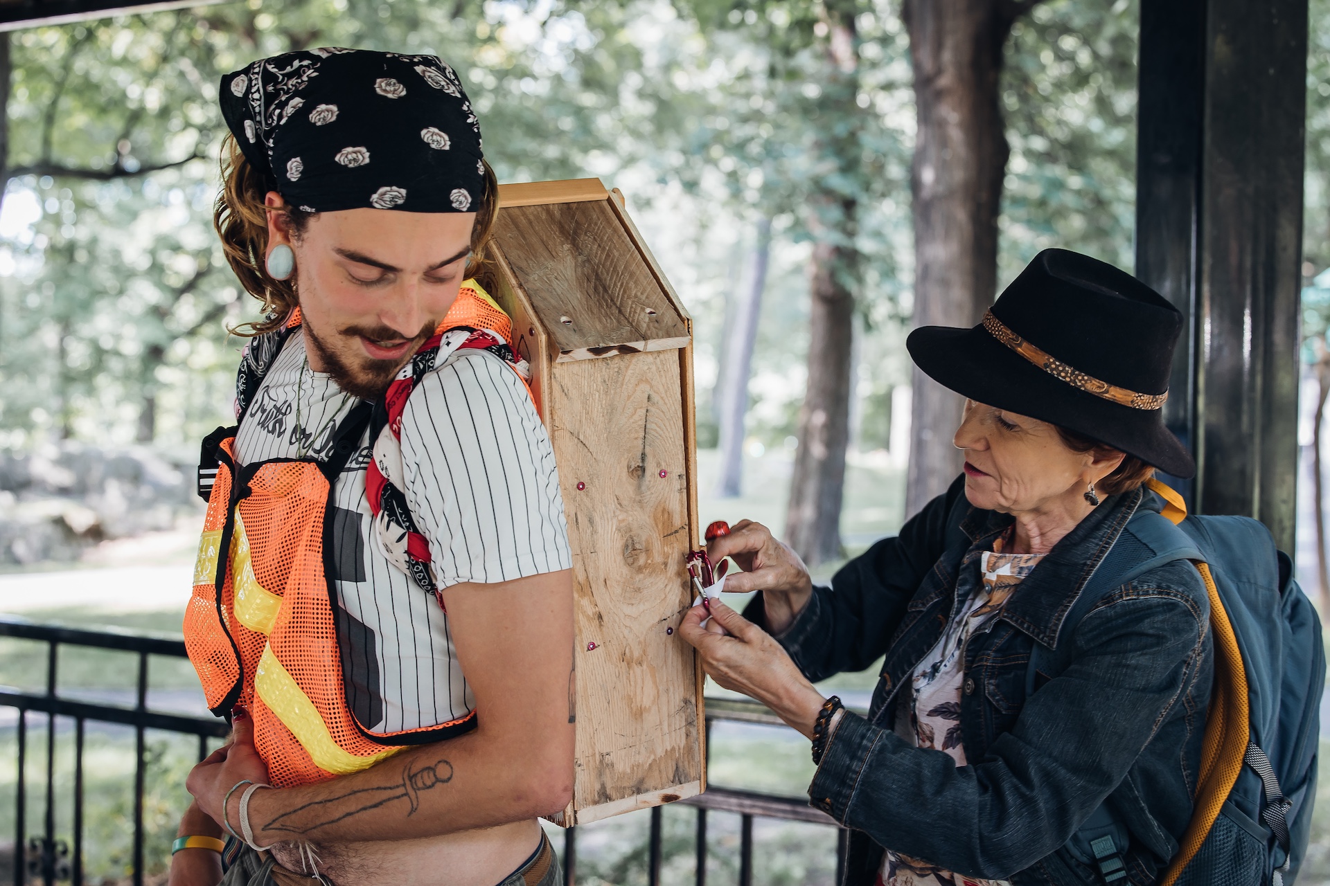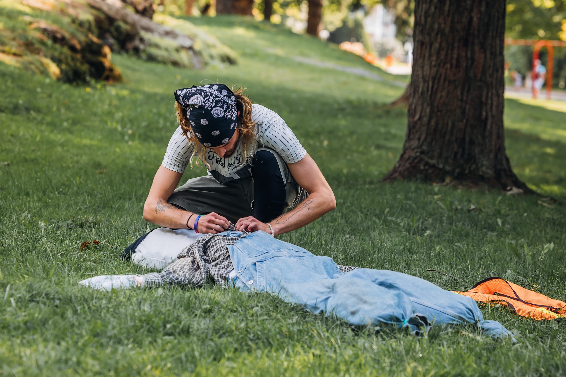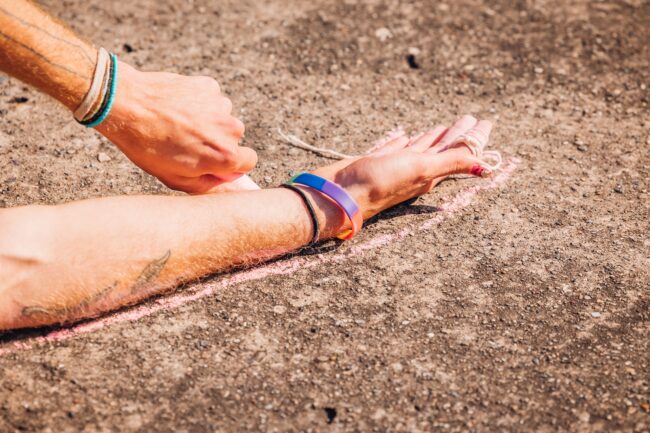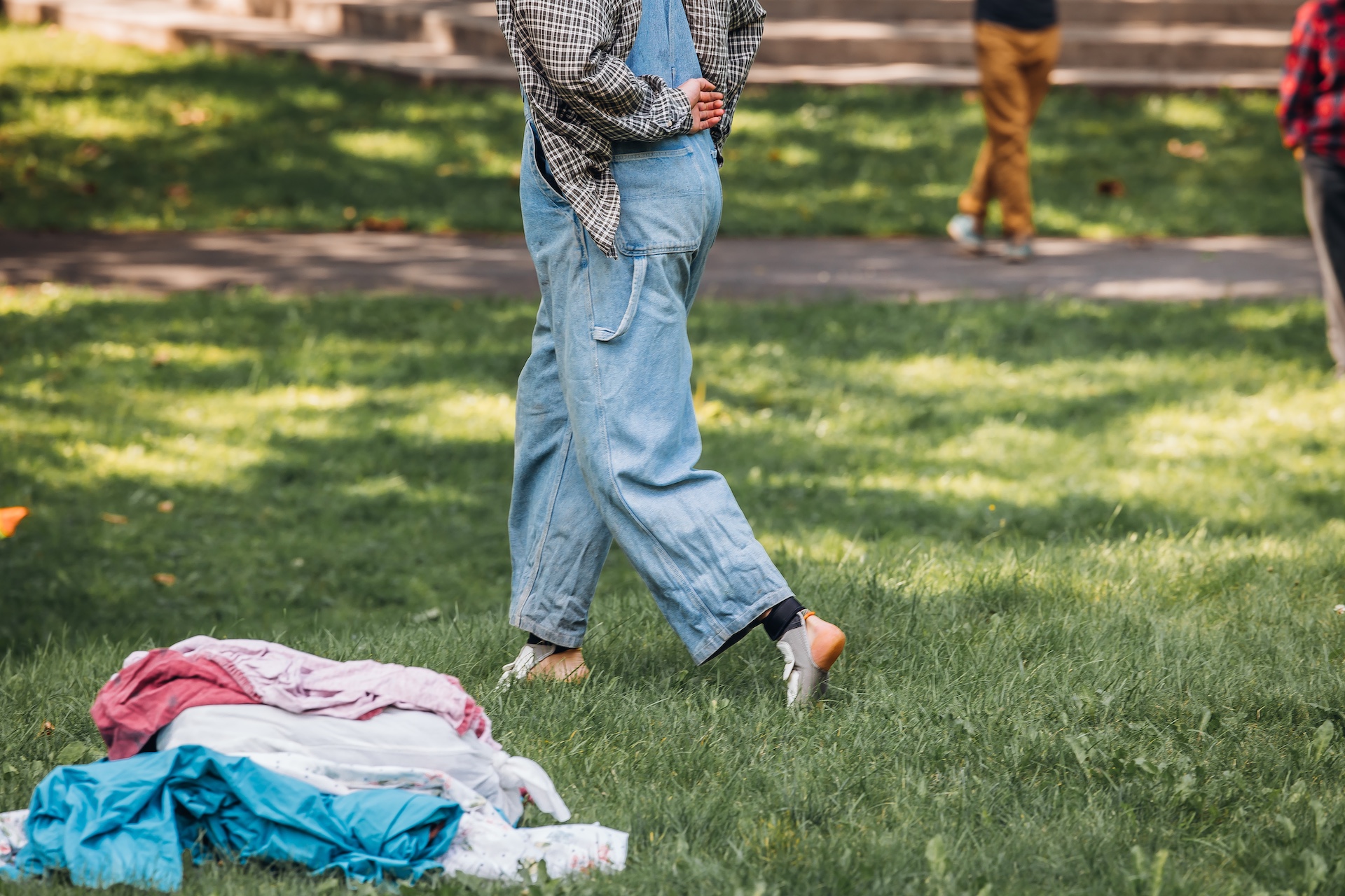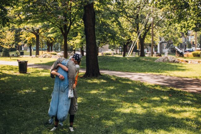 Dans les archives de la Société d’histoire, des coupures de journaux des années 1950 relatent une sinistre arrestation de jeunes hommes accusés d’homosexualité. L’arrestation par l’escouade des crimes contre nature a eu lieu dans un gymnase dont le bâtiment est toujours existant. L’artiste convoque une marche et déploie un geste symbolique à cet endroit. Se tournant vers des groupes communautaires dédiés à la cause LGBTQ+, il organise la tenue de discussions et d’un atelier de création de zines, les engageant à y exposer leurs points de vue. Autre part, n’hésitant pas à mettre en jeu sa propre vulnérabilité, Ézéchiël Nadeau repère et fouille d’anciens lieux de drague clandestins dans des boisés où il s’active à bricoler des artéfacts trouvés, à chorégraphier des gestes performatifs. Sur le web, il détourne des applications de rencontre pour susciter des rendez-vous; ce faisant, il injecte de la sociabilité là où on ne l’attend pas. Il lance une invitation à un 5 à 7 dans le studio de sa résidence d’artiste, s’introduit dans des soirées micro-ouvert où il performe la lecture de ses zines. Pour générer un partage intergénérationnel, il réalise des entretiens avec une militante transgenre. À même le bitume d’un stationnement, il improvise une performance où il dessine à la craie le contour de son corps; à l’intérieur il inscrit Site de rencontre.