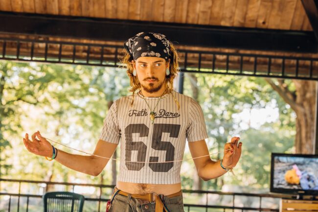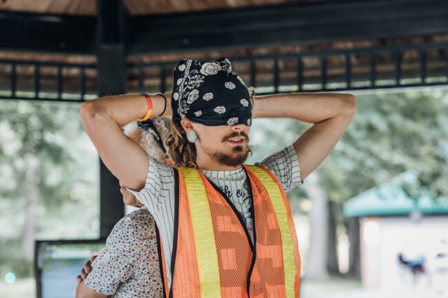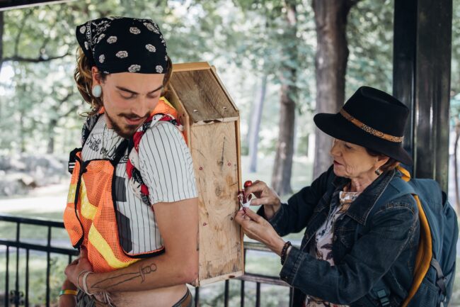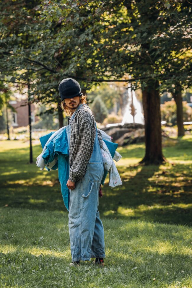 Ézéchiel Nadeau est un artiste interdisciplinaire. Sa pratique inclut la performance, la sculpture, le dessin et l’écriture. Il privilégie la cueillette effrénée, l’accumulation précautionneuse et l’assemblage conceptuel douteux pour produire des expériences esthétiques. En produisant ces amalgames touffus et fragmentés, il tente de sédimenter un savoir qui lui est occulte tout en l’érodant simultanément, pour en maintenir paradoxalement l’opacité. En 2022, il a obtenu un Baccalauréat en arts visuels et médiatiques de l’Université Laval et a été récipiendaire des Prix Avatar, Tomber dans l’œil et Inter/Le lieu, en reconnaissance de la qualité de ses recherches sonore, spatiale et performative.