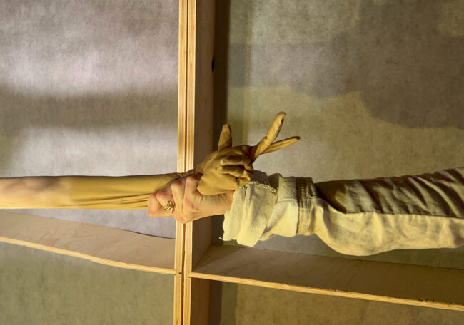 Flueurs fait affleurer la mémoire d’un espace de soin qui a marqué le quotidien des travailleuses de l’usine Imperial Tobacco : une salle de repos menstruel où elles étaient libres de se retirer au besoin. Un théâtre d’ombres et de lumière révèle une hétérotopie oubliée, rappelant le tissu d’empreintes sensibles, d’ajustements et de gestes minuscules qui a modelé une appartenance partagée entre ouvrières et machine, entre soin et cadence. « Être dans ses fleurs », s’adapter au rythme du travail, aux flux du corps, flotter dans la lueur liminale d’une pause avant de reprendre sa place dans la chaîne de production…