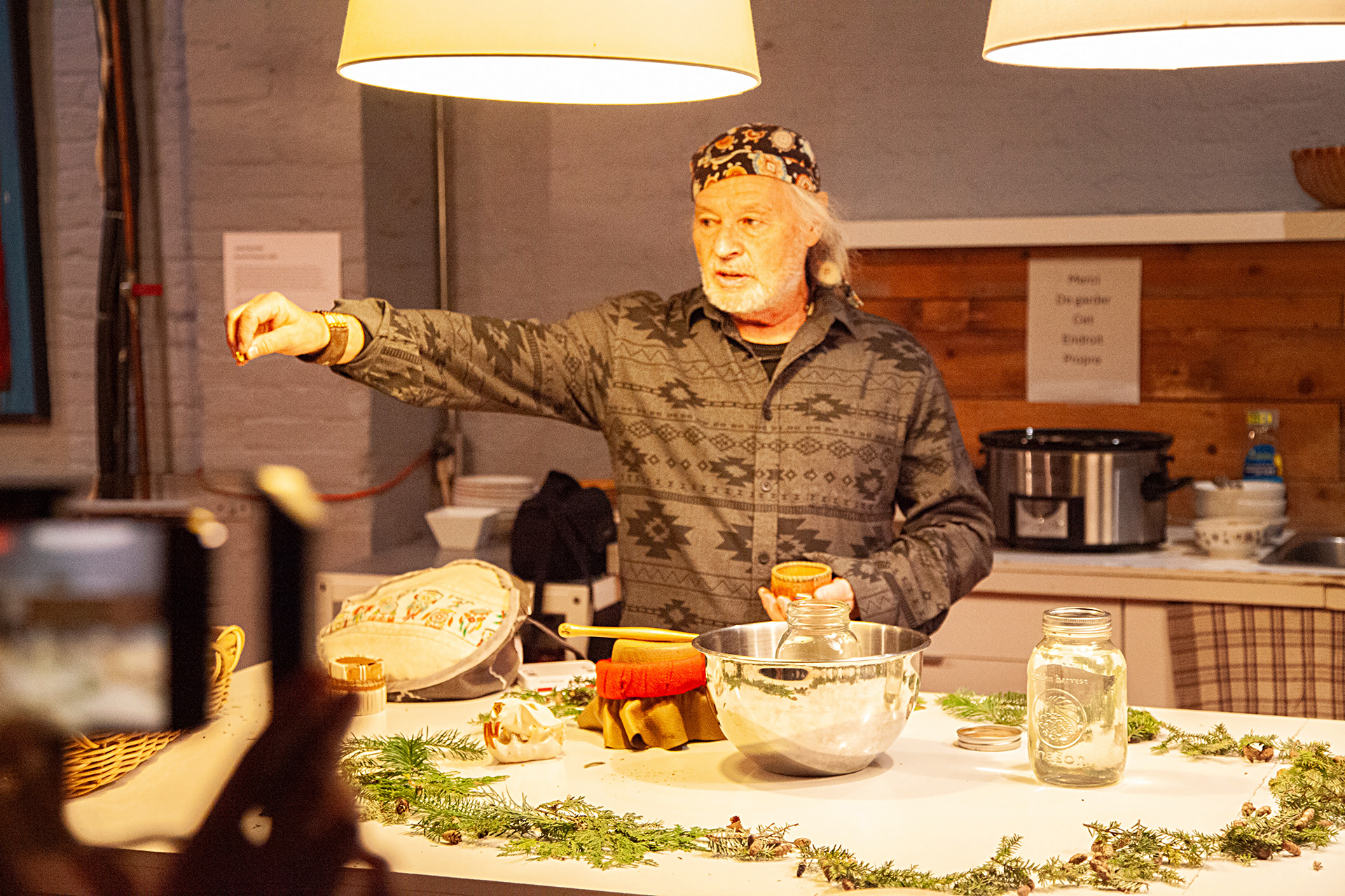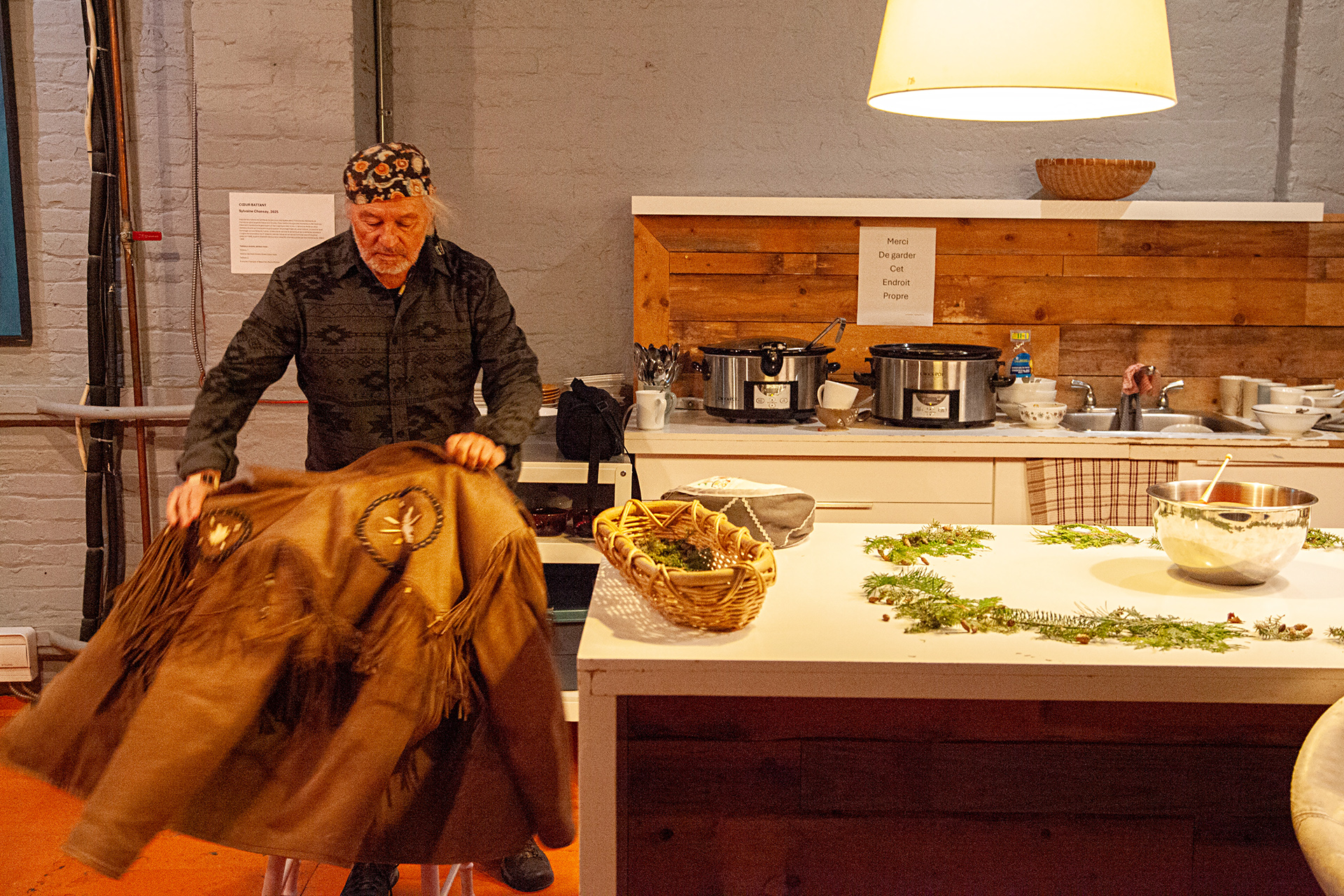 Wendat originaire de Wendake, Guy Sioui Durand Tsie8ei 8enho8en est un sociologue, critique d’art engagé et commissaire indépendant qui appelle à la décolonisation des esprits par le réensauvagement des imaginaires. Il est l’auteur de plusieurs ouvrages parmi lesquels L’art comme alternative. Réseaux et pratiques d’art parallèle au Québec 1976-1996, paru chez Inter éditeur en 1997. Il crée des harangues performées en fusionnant les formes autochtones de l’oralité avec les codes de la performance. Depuis 2012, il enseigne à l’Institution Kiuna, seule institution d’enseignement autochtone autonome au Kébec. Expert de l’art autochtone et de l’art actuel, il est sollicité par plusieurs institutions et organismes. Il a été membre du conseil d’administration de l’Association des conservateurs autochtones du Canada de 2009 à 2014 et du comité organisateur du colloque Iakwé:iahre : Se remémorer/We remember (Montréal, 2014). Il est membre du clan de Yanariskwa’ (clan du Loup). Il participe aux rencontres et cérémonies de la Yanonchia’, la Maison longue traditionnaliste. Il appuie le projet de revitalisation de la langue Wendat.