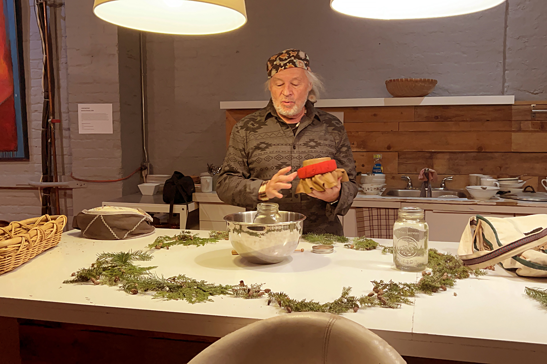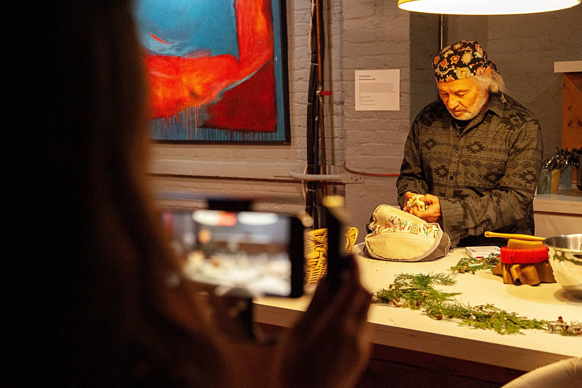 L’auteur Guy Sioui Durand Tsie8ei 8enho8en revisite l’œuvre de l’artiste Sonia Robertson, Nipishtanau Tshishtemau (Je donne le tabac), réalisée dans le contexte d’une résidence de création au 3e impérial en 1997. Il en propose une analyse critique sous le prisme des concepts de rez d’art et d’art total autochtone, fédérés par un regard théorique autochtone, la sociologie du maïs.